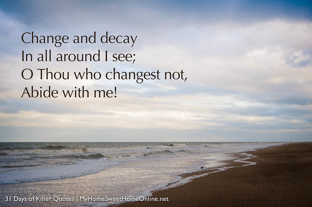The verse ‘Oh Thou who changest not, abide with me’, from the hymn ‘Abide with me’ instilled in me that much-needed bolstering I badly needed. I sang that verse quietly, each time I entered the quiet and the darkness of my home.